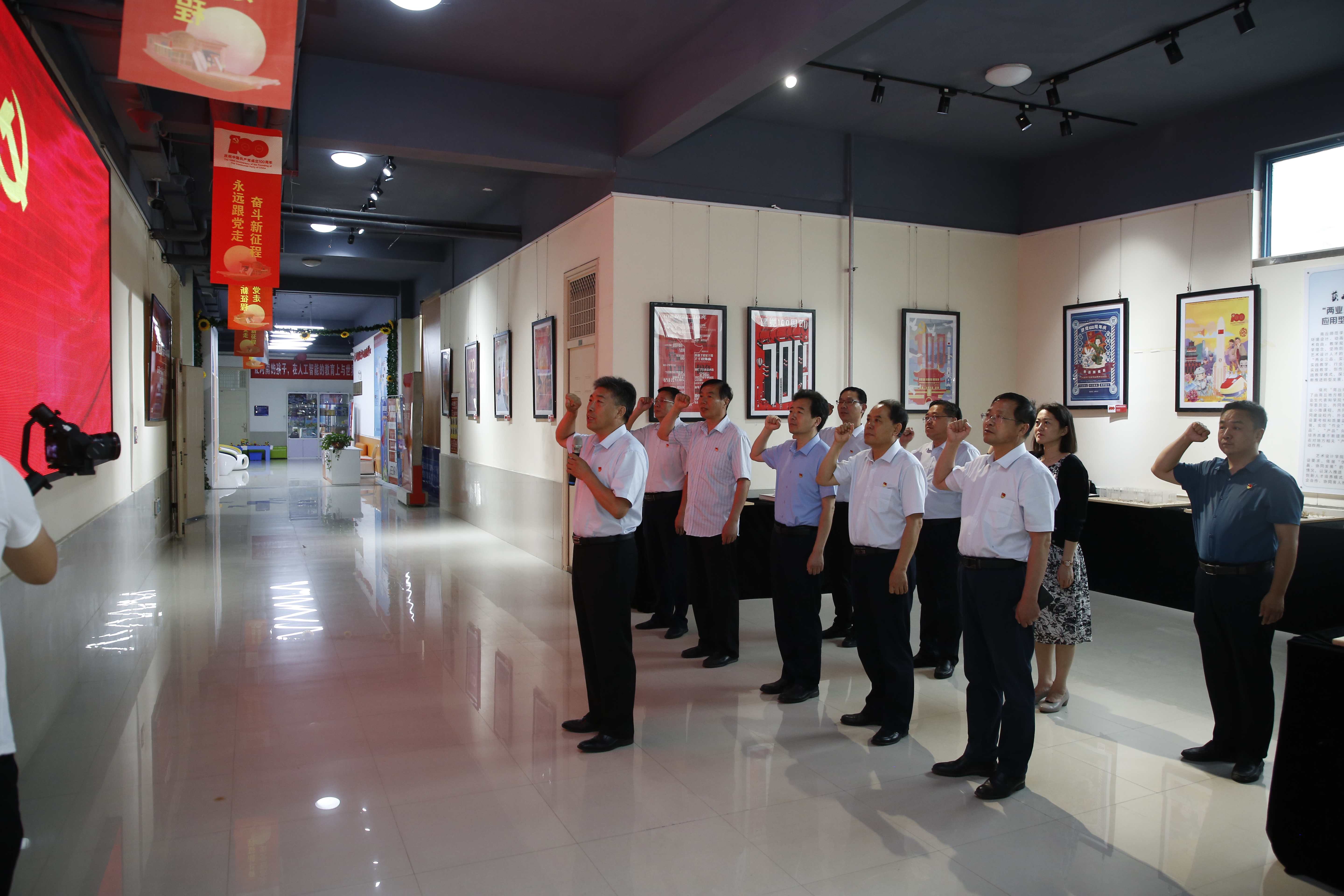 此次党史学习教育主题党日活动,以参观艺术设计学院图片展的形式学习党史。校领导从一楼到四楼依次参观了照片画、剪纸、海报、摄影四个展区,认真听取学生讲解员介绍展品的艺术文化价值和其背后蕴含的党的精神,以及新中国成立前后各个时期党员的优秀精神面貌和时代风采。随后,校领导班子成员在司林胜的领导下重温入党誓词,通过重温入党誓词,理清思绪,让理性的光辉照亮前行的道路,恪守承诺,保持党的先进性和纯洁性。