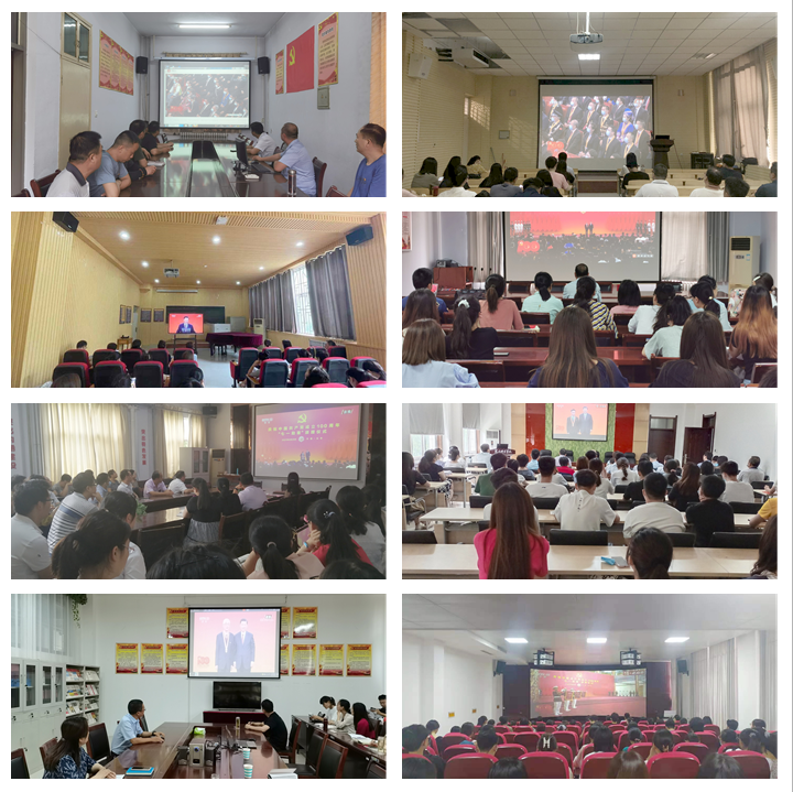 在做好疫情防控的前提下,校党委书记司林胜、校长陈向炜等校领导和各机关单位党员在梁园校区归德楼收看了大会实况直播。各基层党委、党总支分别组织师生党员在各学院收听收看。