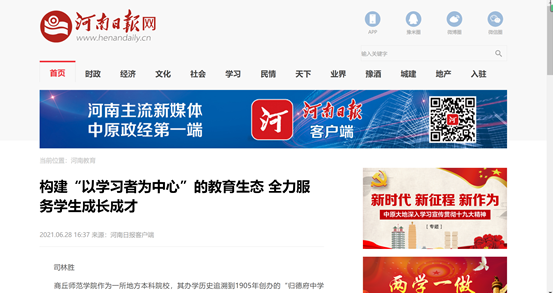 1、《河南日报》:构建“以学习者为中心”的教育生态 全力服务学生成长成才