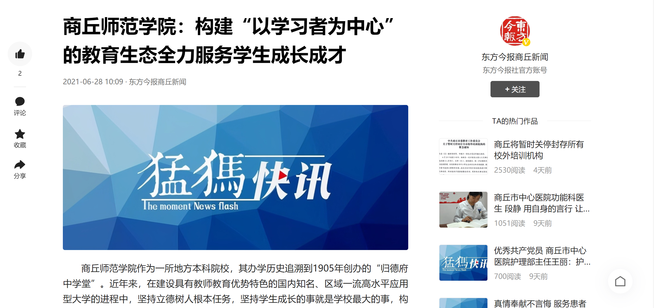 4、东方今报商丘新闻:商丘师范学院:构建“以学习者为中心”的教育生态全力服务学生成长成才