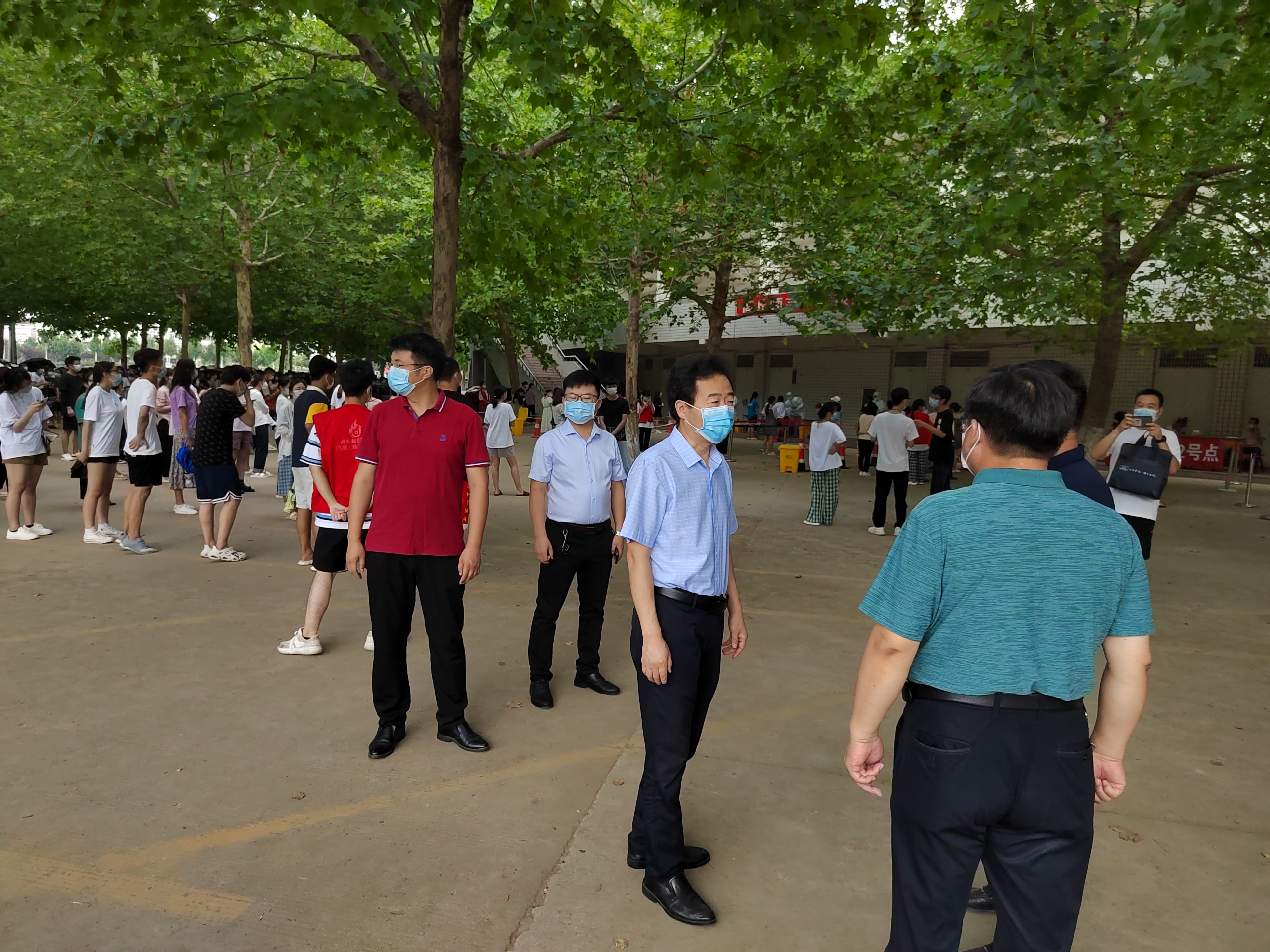 期间,校长陈向炜、副校长徐茂田、郭文佳、程功鹏带领疫情防控工作领导组办公室成员单位负责人,实地察看了核酸检测工作开展情况,并向所有医护和工作人员表示慰问和感谢,希望大家齐心协力,在做好自我防护的同时,高质量高标准高速度完成好核酸检测工作。