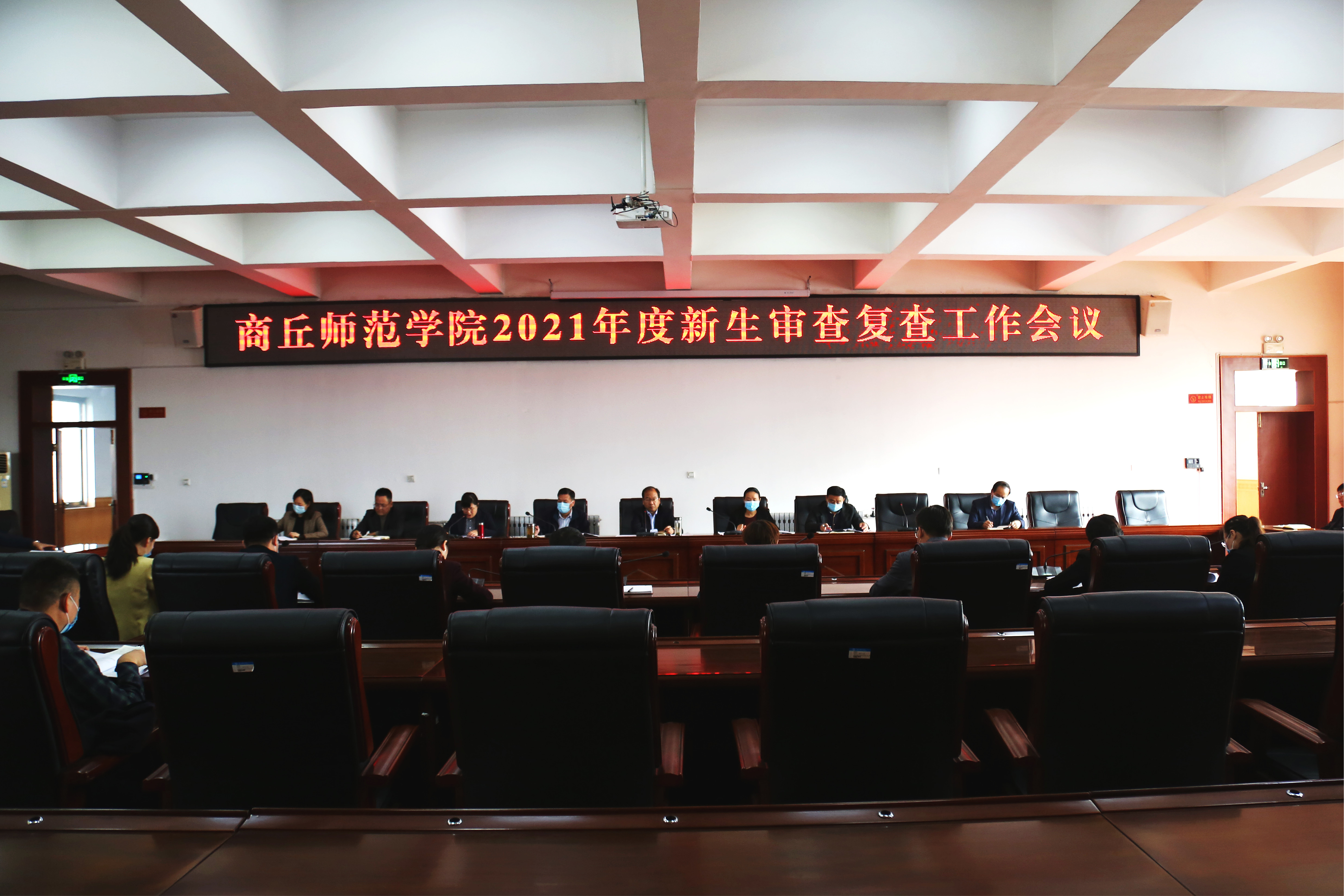 10月14日,2021级新生入学资格审查复查工作会议在梁园校区召开,纪委书记李永春和副校长郭文佳出席会议,纪检监察机关、教务处、学生处、招生与就业处、校团委负责人及各学院党委书记参加会议,会议由郭文佳主持。