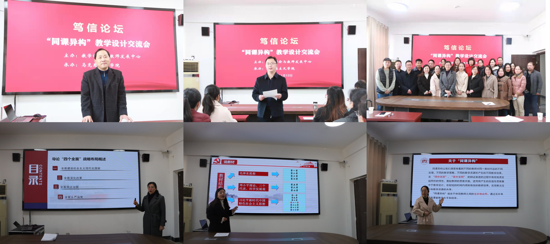 11月12日,由教学评价与教师发展中心主办、马克思主义学院承办的首期笃信论坛在马克思主义学院会议室举行。首期论坛的主题为《“同课异构”教学设计交流会》。