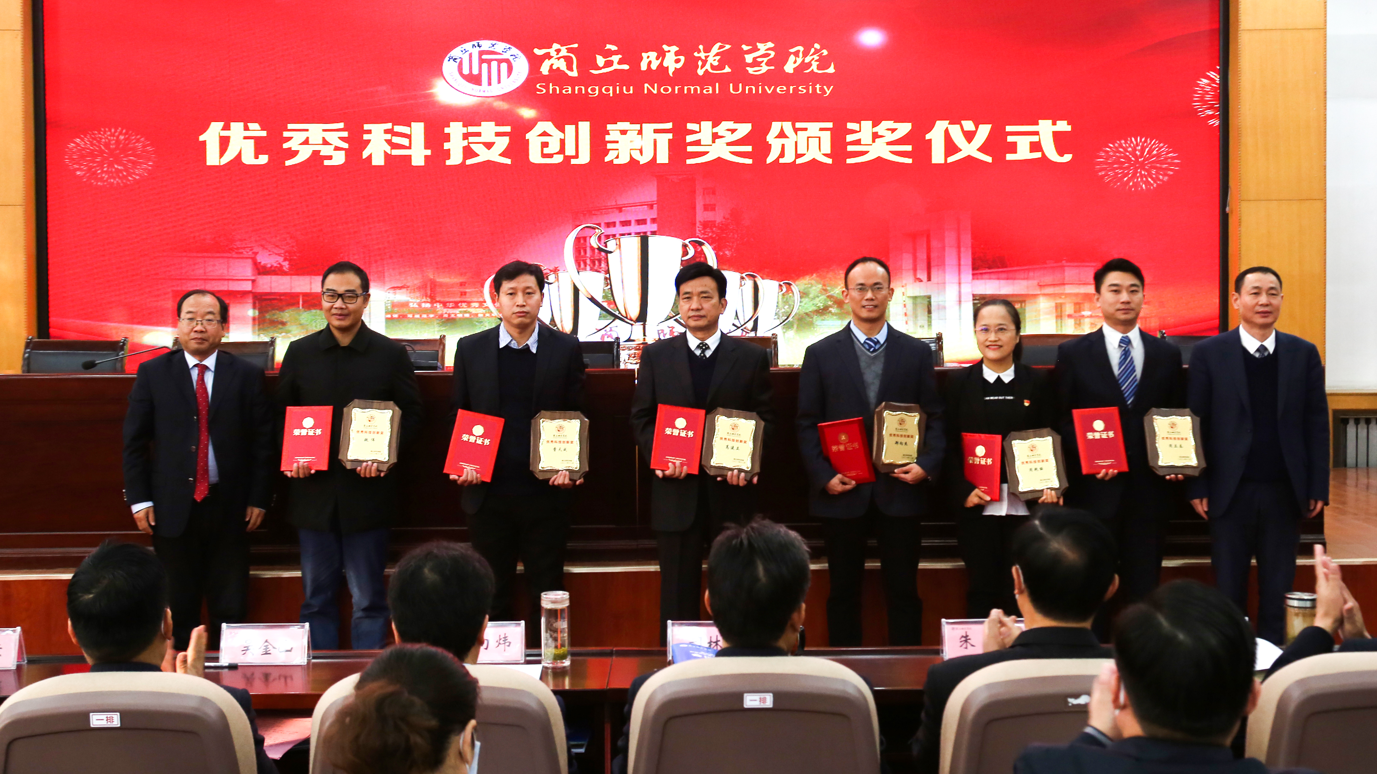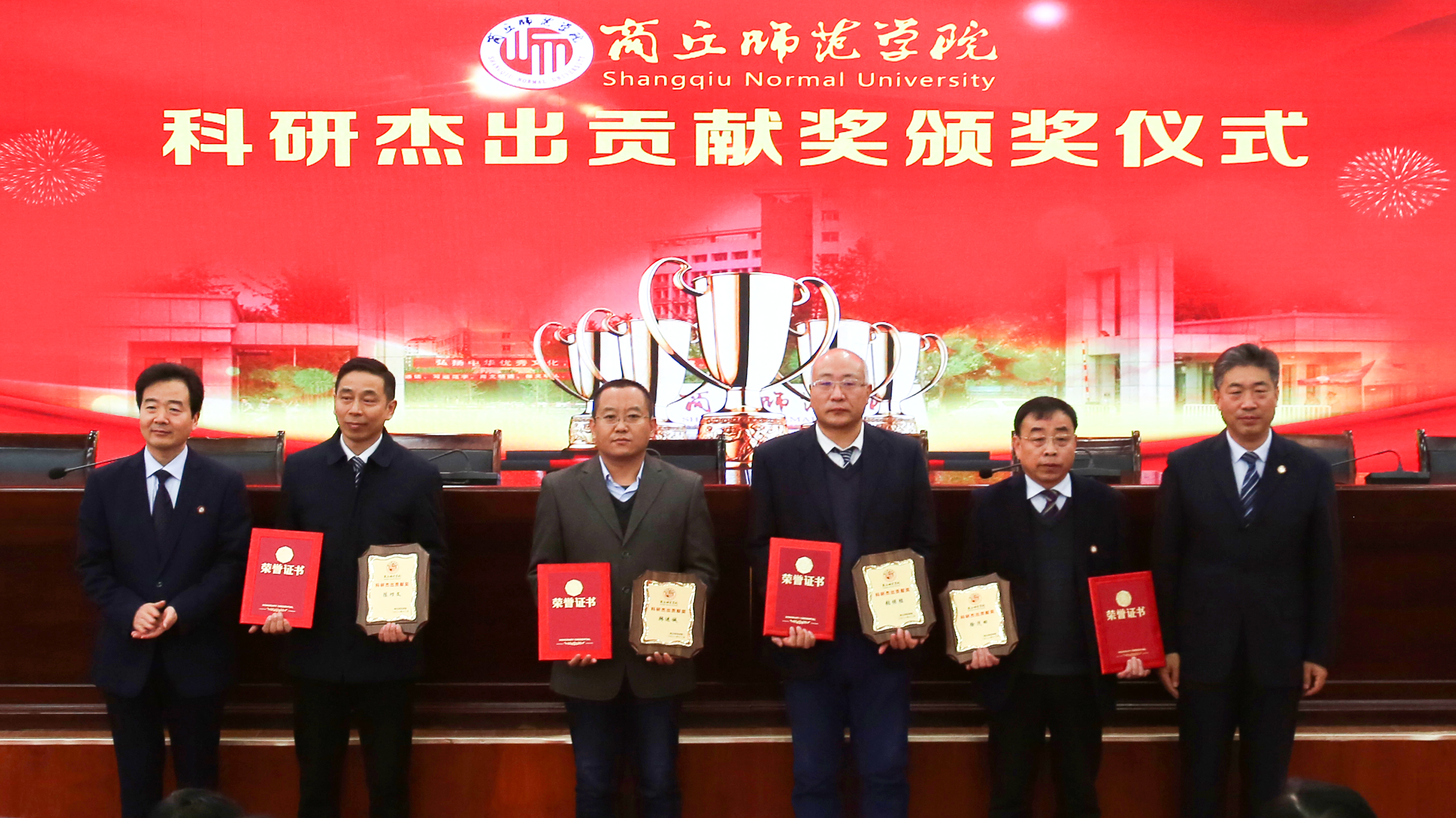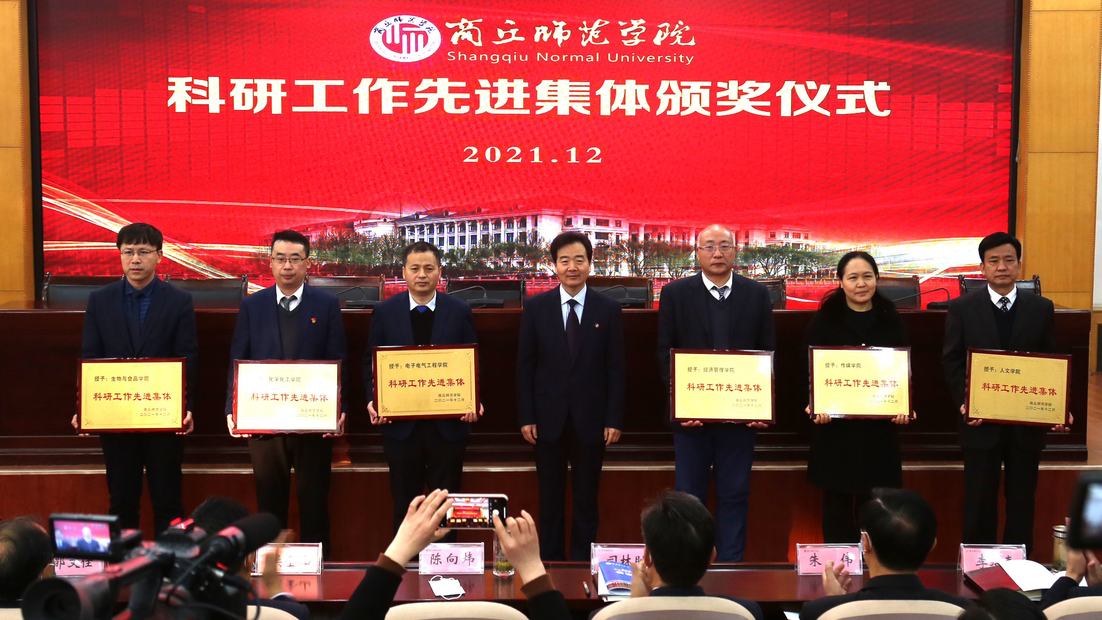 校党委副书记朱伟宣读了《中共商丘师范学院委员会关于表彰人才工作先进单位的决定》。党委副书记吴金山宣读了《商丘师范学院关于表彰科研先进集体和先进个人的决定》。全体校领导分别为获奖单位和个人颁奖。科研和人才工作先进单位代表化学化工学院张银堂,科研工作先进个人代表经济管理学院郑向杰代表发言。