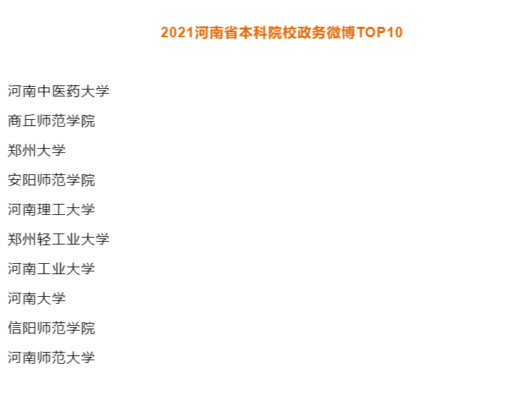 2021年河南省本科院校政务微博TOP10