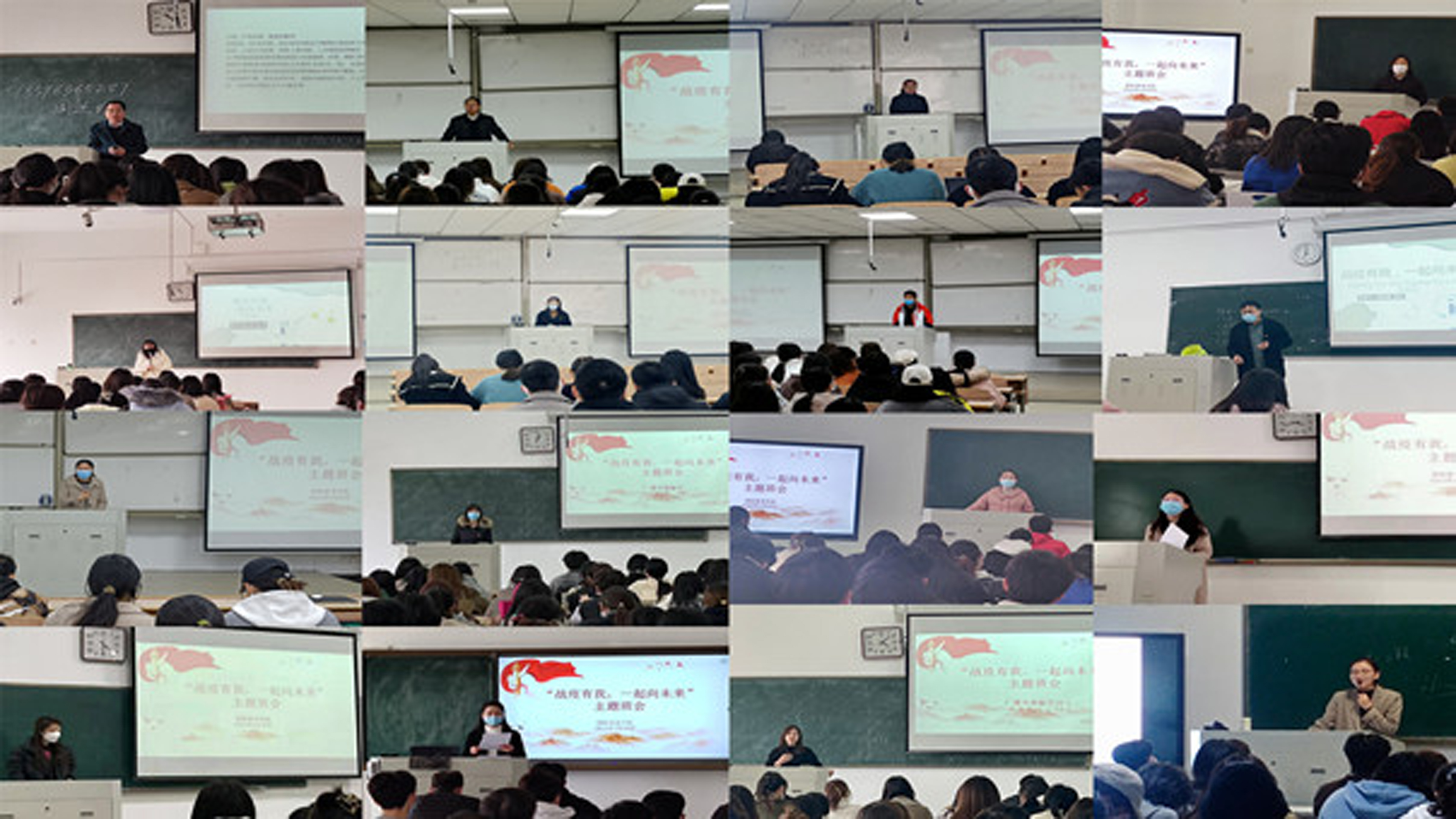 为贯彻落实学校疫情防控工作会议精神,从严从细从实做好学院疫情防控工作,筑牢广大学生疫情防控思想防线,3月17日至21日,国际教育学院组织召开“战疫有我,一起向未来”主题班会。主题班会通过线下线上相结合方式召开,学院包干领导全部参与,89个行政班4347名学生参加主题班会,覆盖率达到100%,各年级辅导员主持班会。