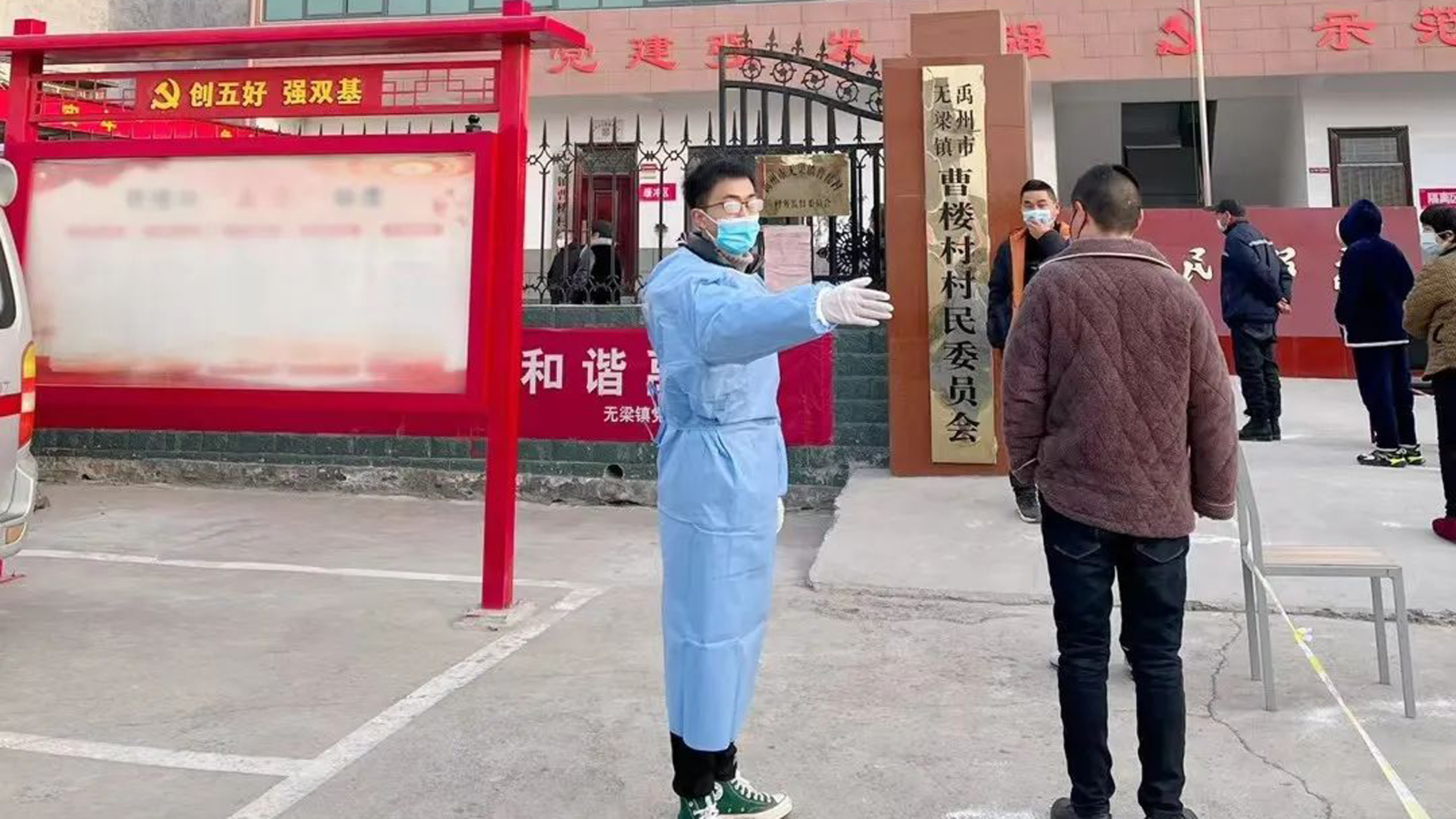 2022年1月3日一场疫情防控阻击战在河南省许昌市骤然打响。商丘师范学院数学与统计学院2018级王喜涛同学迅速号召组织“抗击疫情守护家乡”家乡大学生志愿者服务队,夜以继日地投入到疫情防控工作中。