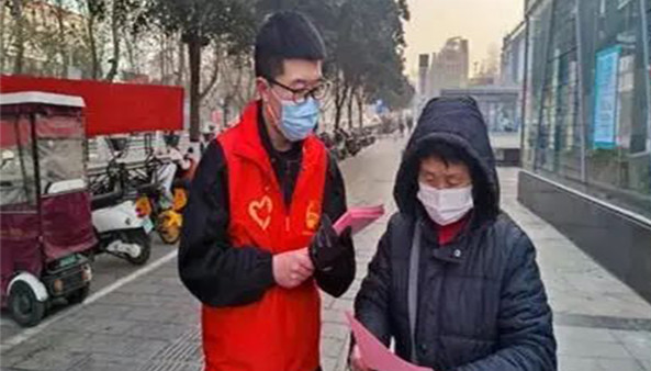 他积极响应共青团巩义市委号召,经过培训便被分到组宣部,投入到了团市委的政务实践工作中。他是大学生“返家乡”政务实践活动中第一个报道的大学生,在共青团巩义市委的号召下主动报名加入疫情防控政策宣传志愿者队伍。身着志愿者红马甲的他走上街头,为行人发放“疫情防控十要十不要”宣传单,积极向广大人民群众宣传讲解疫情防控政策,并走进沿街商铺、商场和餐饮场所,叮嘱商家严格遵守疫情防控政策要求,落实疫情期间戴口罩、扫码、测温后进入公共场所,以及禁止堂食的规定。他说:“我希望我和其他疫情防控政策宣传志愿者能够一起为巩义的寒冬增添了一抹亮丽的志愿红。”
