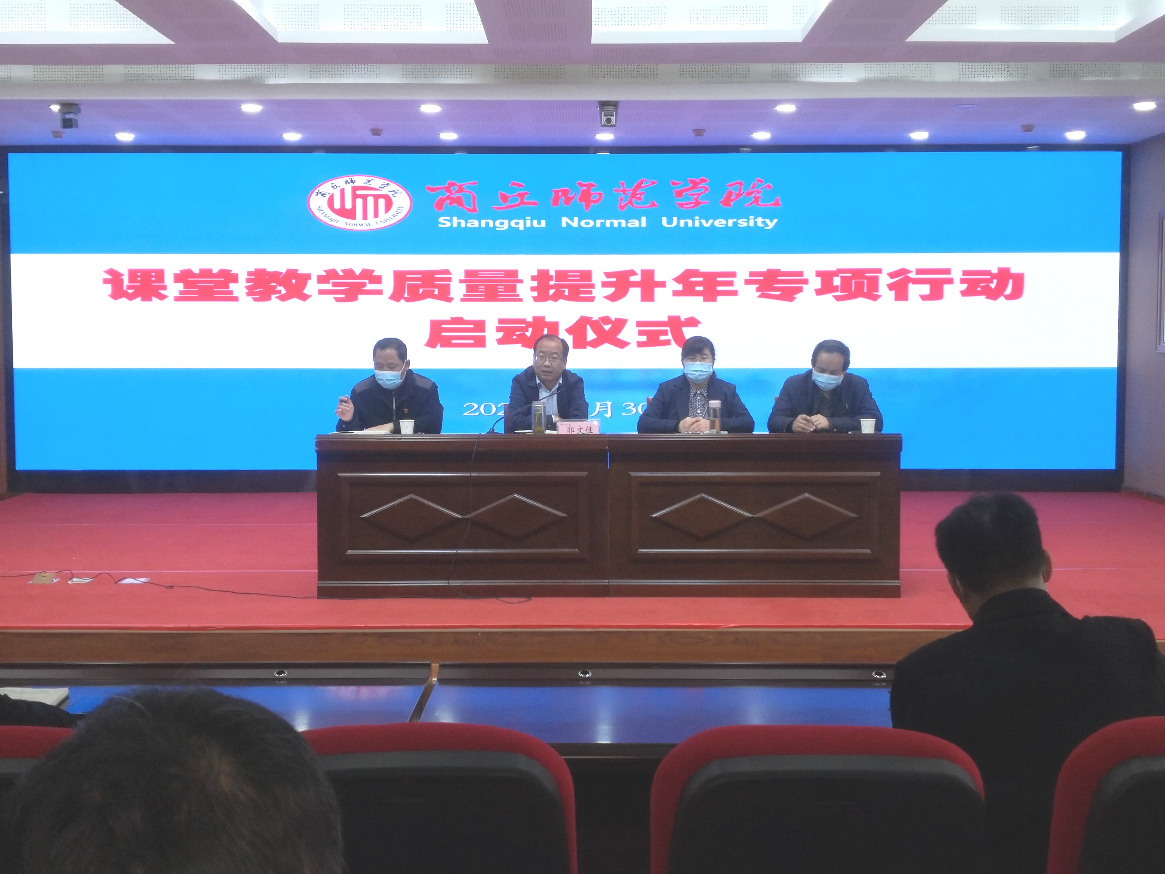 为贯彻落实省委“能力作风建设年”活动部署要求,深化我校教育教学改革,充分发挥好课堂教学的人才培养主渠道、主阵地作用,切实提高课堂教学质量和育人水平。3月30日,我校在梁园校区三商楼召开“课堂教学质量提升年专项行动”启动仪式暨部署推动会议。副校长郭文佳出席,教务处、教学评价与教师发展中心部门负责人,各学院院长、分管教学工作副院长参加会议。