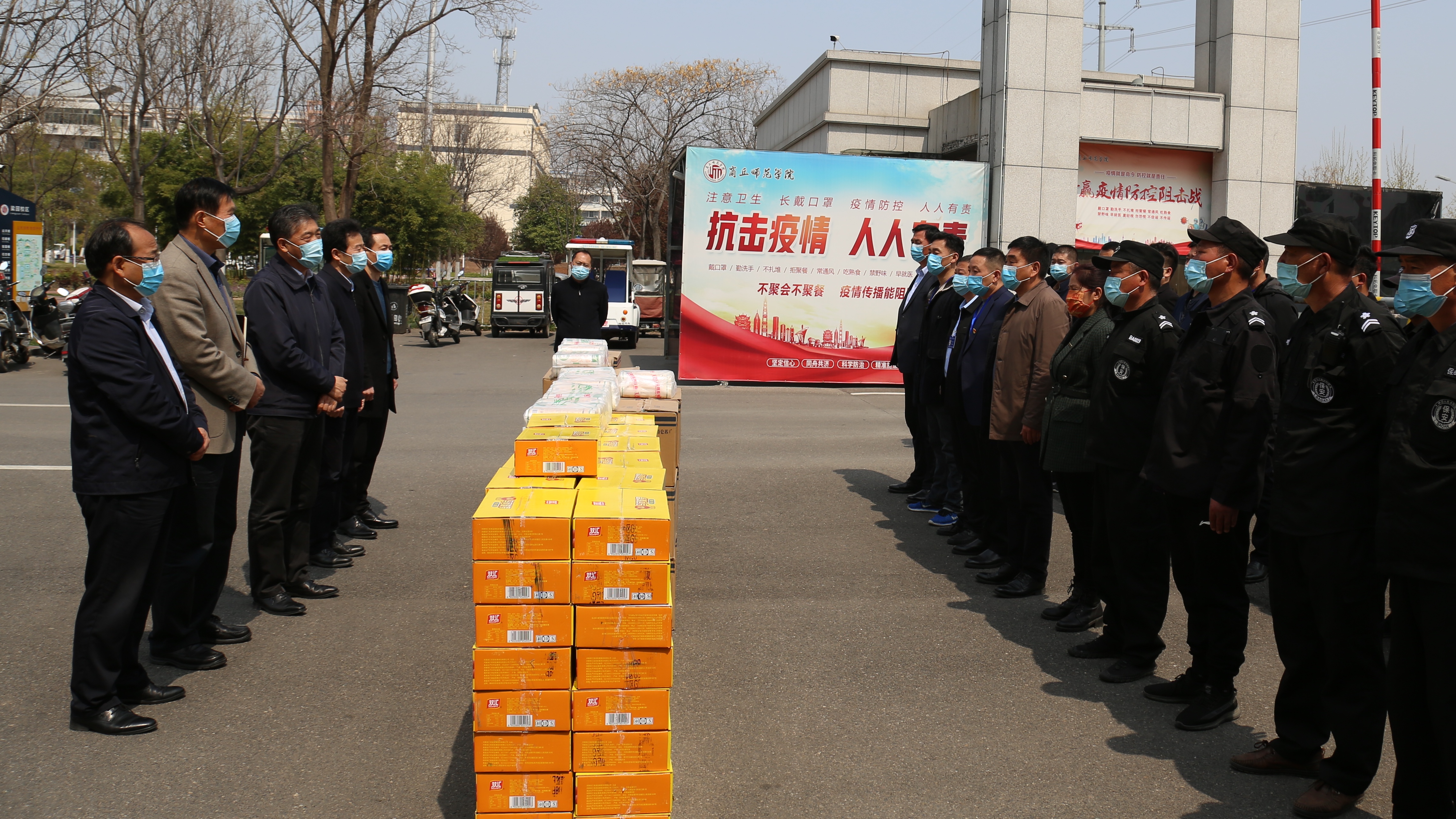 4月1日,校党委书记司林胜,校长陈向炜,校领导朱伟、郭文佳、张箭在校工会副主席朱军陪同下,在梁园校区慰问我校坚守疫情防控一线保卫人员,为坚守疫情防控一线的保卫人员送去牛奶、挂面等慰问物品。