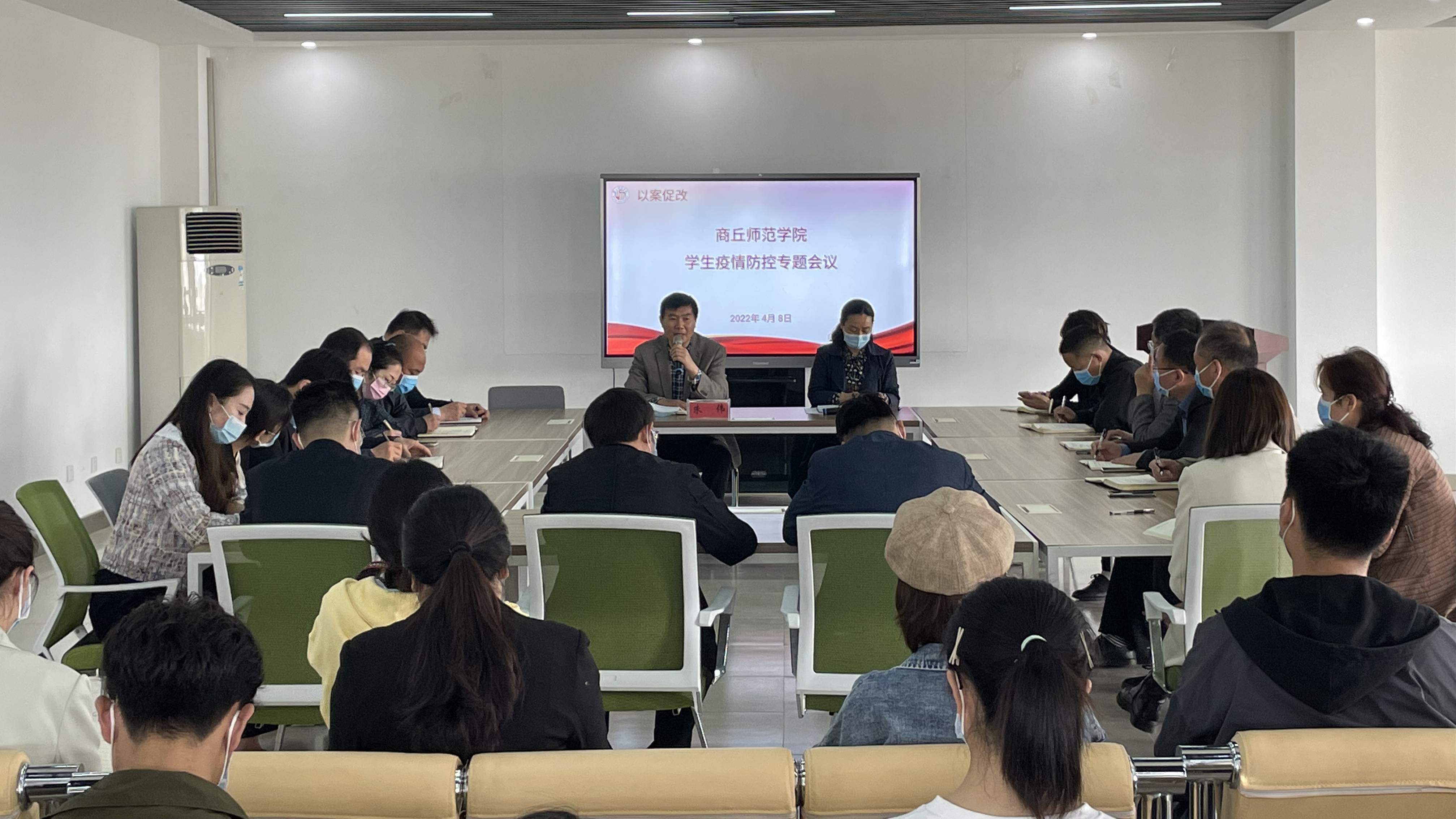 4月8日上午,我校在梁园校区学生事务服务中心召开学生疫情防控专题会议。校党委副书记、工会主席朱伟出席会议。梁园校区各学院党委副书记、辅导员代表和学生代表现场参加会议,睢阳校区各学院党委副书记、其余辅导员线上参加腾讯会议。