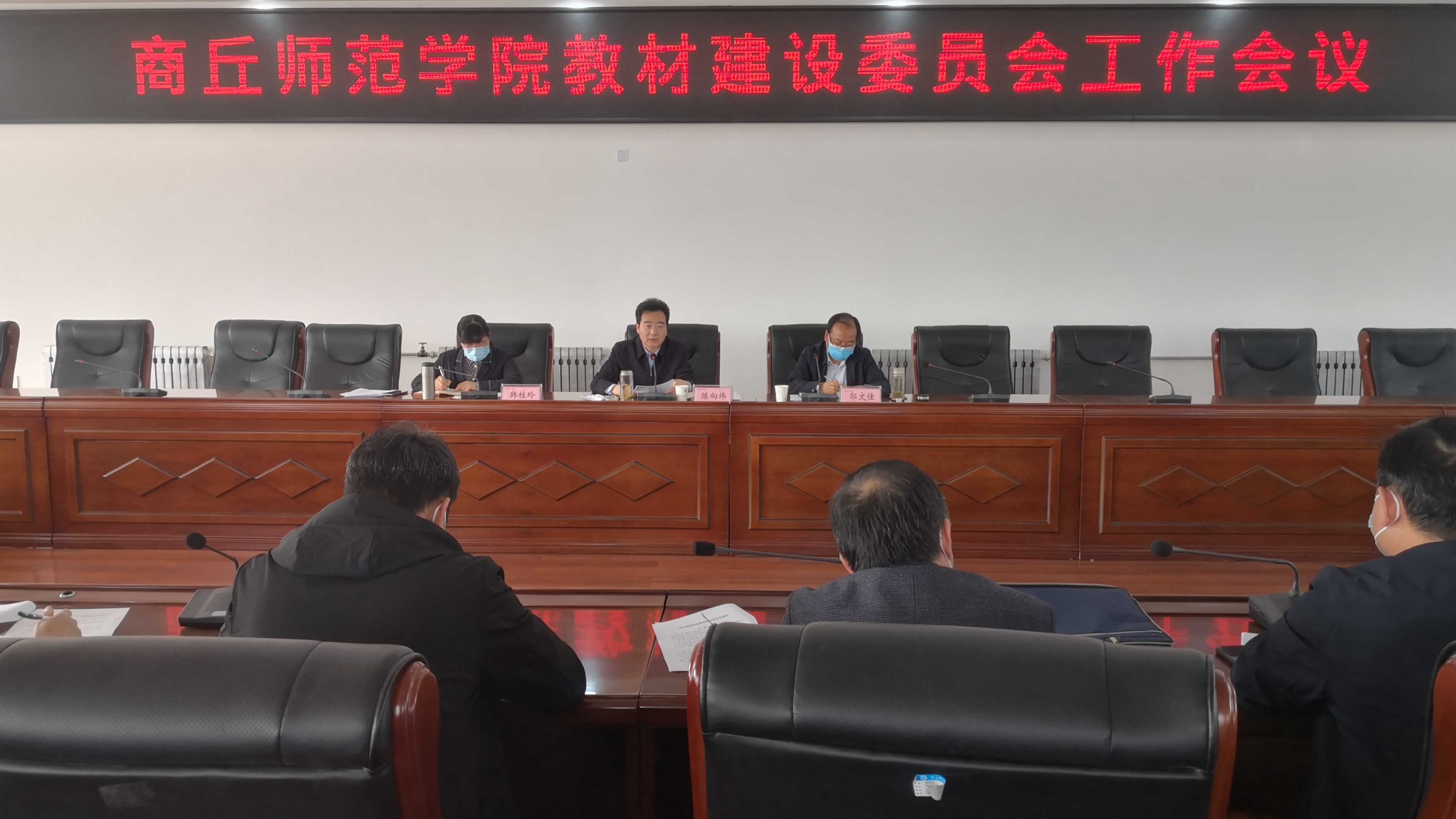学校教材建设委员会办公室主任、教务处处长韩桂玲领学了《河南省普通高等学校教材管理实施细则(试行)》、传达了《商丘师范学院教材建设与管理办法(修订)》。简要介绍了我校2021-2022年教材建设工作的基本情况,重点是马工程教材使用情况和教务管理部门围绕教材建设开展的重点工作。