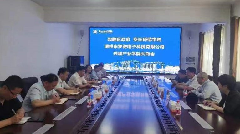 6月13日,梁园区政府副区长刘振华,苏州大学特聘教授、浙江湖州布逻微电子科技公司乔东海博士和乔松郁总经理一行到我校调研产业学院建设,共商合作事宜。商丘师范学院党委副书记吴金山,党政办、科研处、校地合作与服务中心、电子电气工程学院等负责同志及相关教授博士、梁园区园林绿化局局长赵宗允参加调研座谈会。