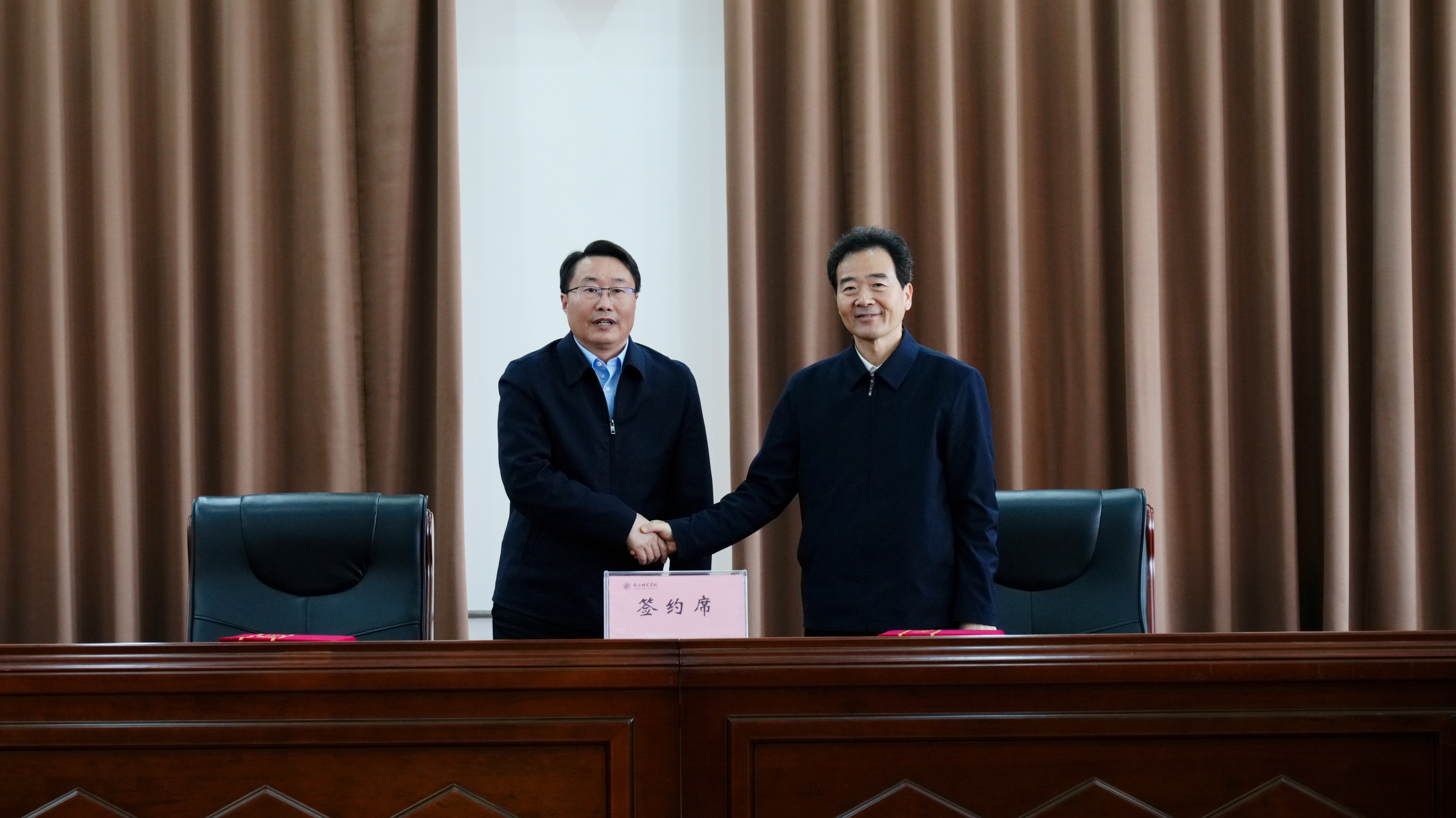 校长陈向炜和李长东分别代表学校和睢阳区人民政府签订商丘师范学院和睢阳区人民政府全面框架协议补充协议。