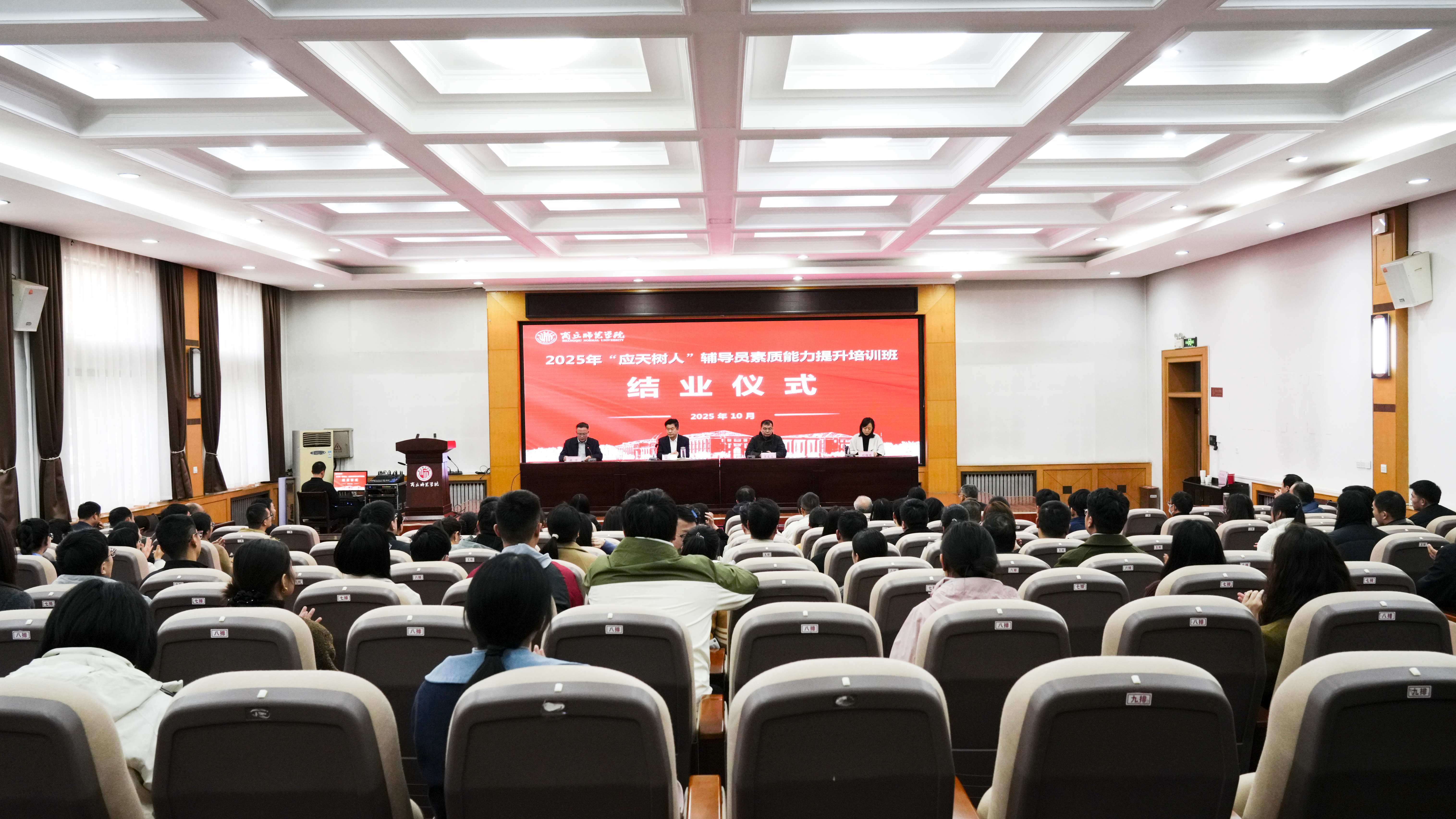 为深入贯彻落实立德树人根本任务,扎实推进我校辅导员队伍专业化、职业化、专家化建设,10月20日至21日,我校在梁园校区归德楼成功举办2025年“应天树人”辅导员素质能力提升培训班。校党委书记张尚字、党委副书记刘国庚、副校长王晓征出席。党委教师工作部、党委学生工作部、校团委有关同志,各学院党委副书记、全体专兼职辅导员、班主任代表参加培训。