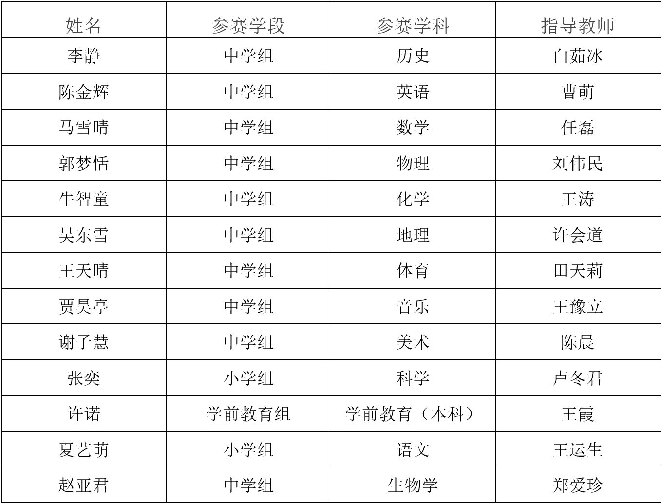 河南省第二十三届高等学校师范类专业毕业生教学技能比赛获奖名单