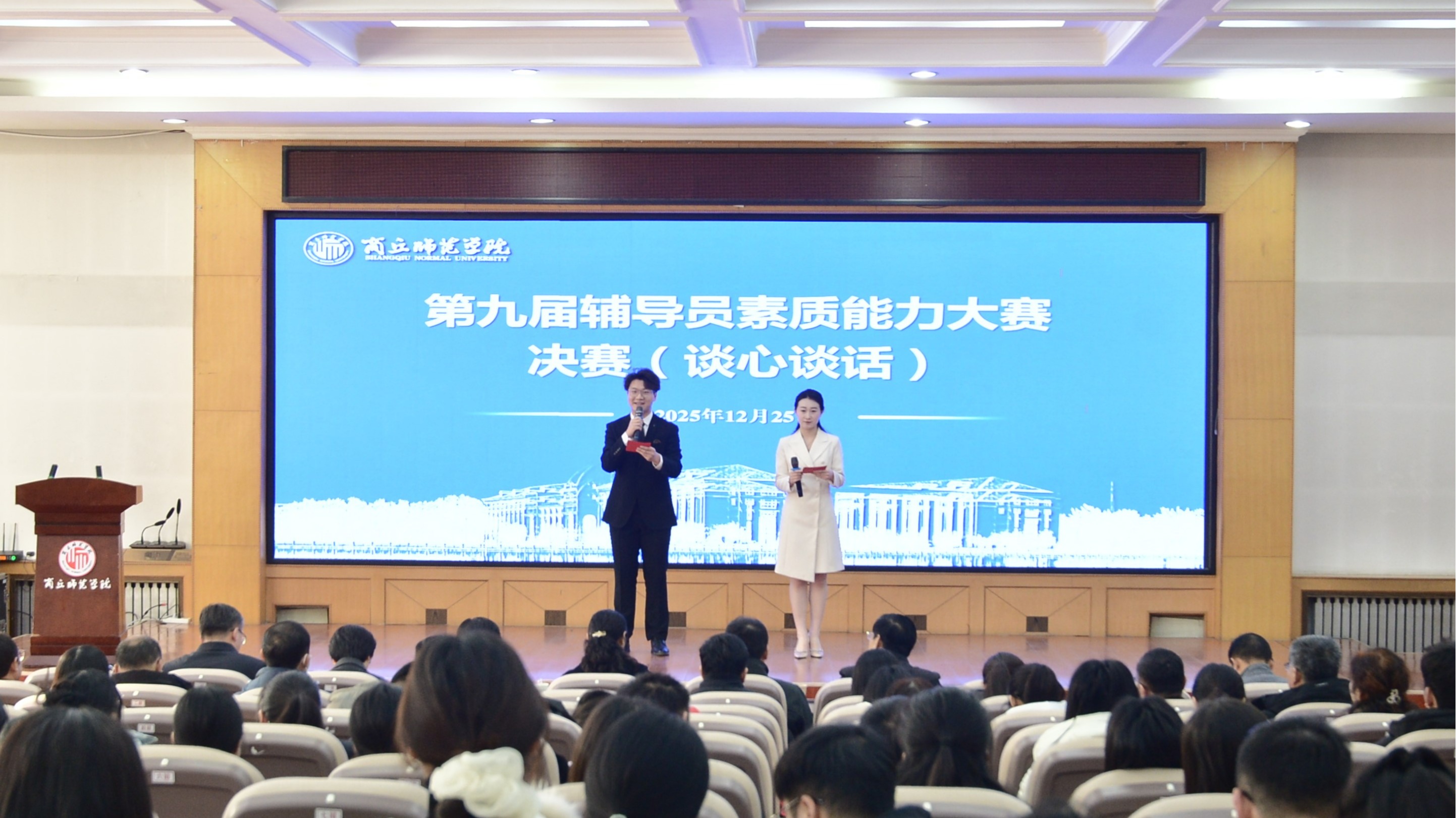 为搭建辅导员风采展示与专业交流平台,持续提升辅导员队伍的综合素质,12月25日,我校在梁园校区归德楼举办第九届辅导员素质能力大赛决赛。副校长王晓征出席活动,学校相关部门负责人担任评委,学生处全体工作人员、各学院党委副书记、全体专兼职辅导员及班主任代表到场观摩。