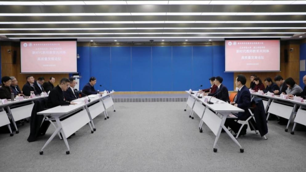 12月30日,校党委书记张尚字、校长陈向炜一行到江苏师范大学,参加新时代教师教育共同体高质量发展双校论坛。江苏师范大学党委书记芮国强、校长杜增吉出席活动,论坛由江苏师范大学副校长赵鹏主持。我校副校长韩桂玲,两校职能部门负责同志出席论坛。
