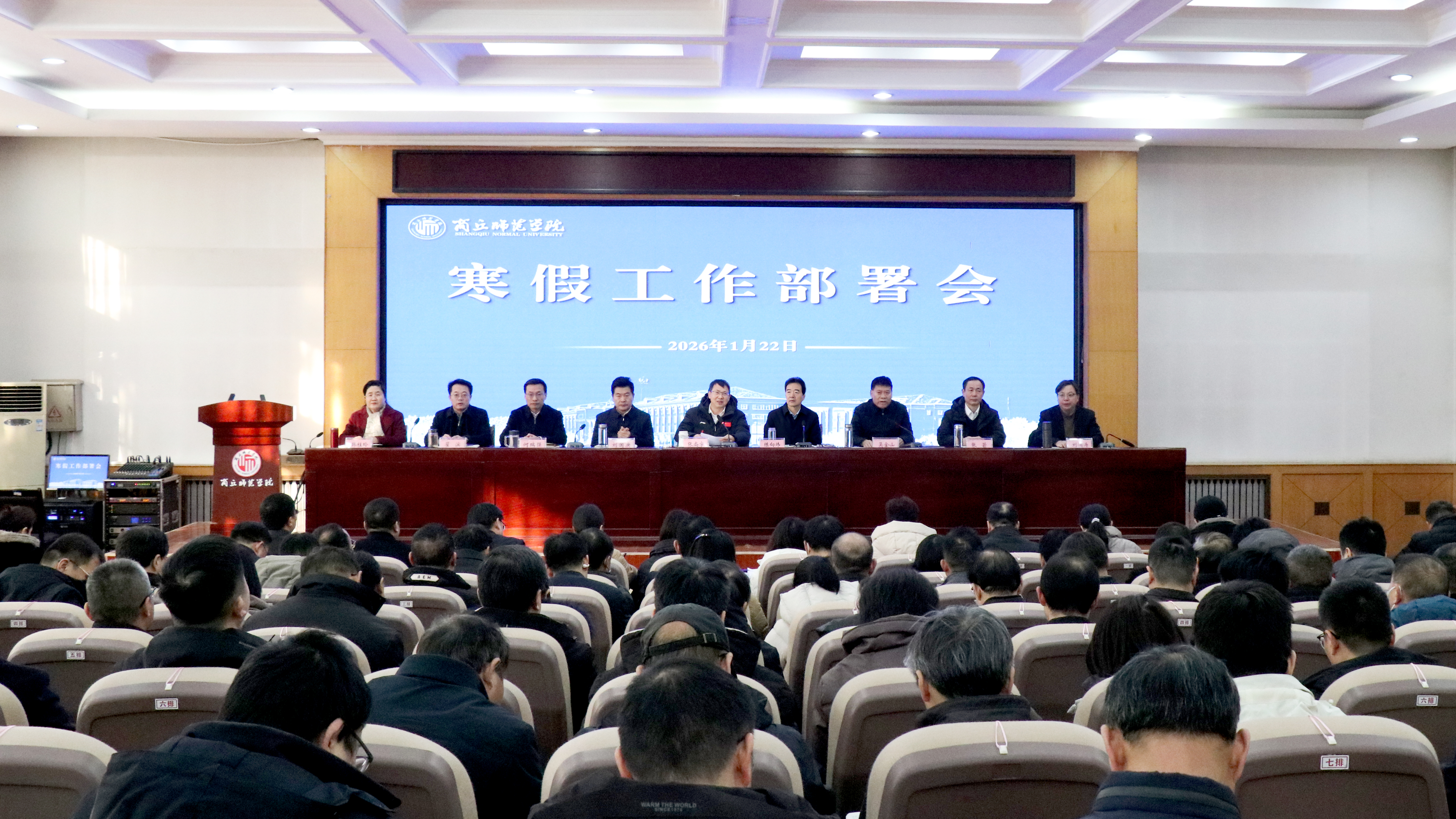 1月22日,我校召开假期工作部署会,校领导张尚字、陈向炜、刘国庚、吴金山、何瑞强、张箭、翟滨、刘澜涛、韩桂玲出席会议,全体中层干部参加会议。党委副书记吴金山主持会议。