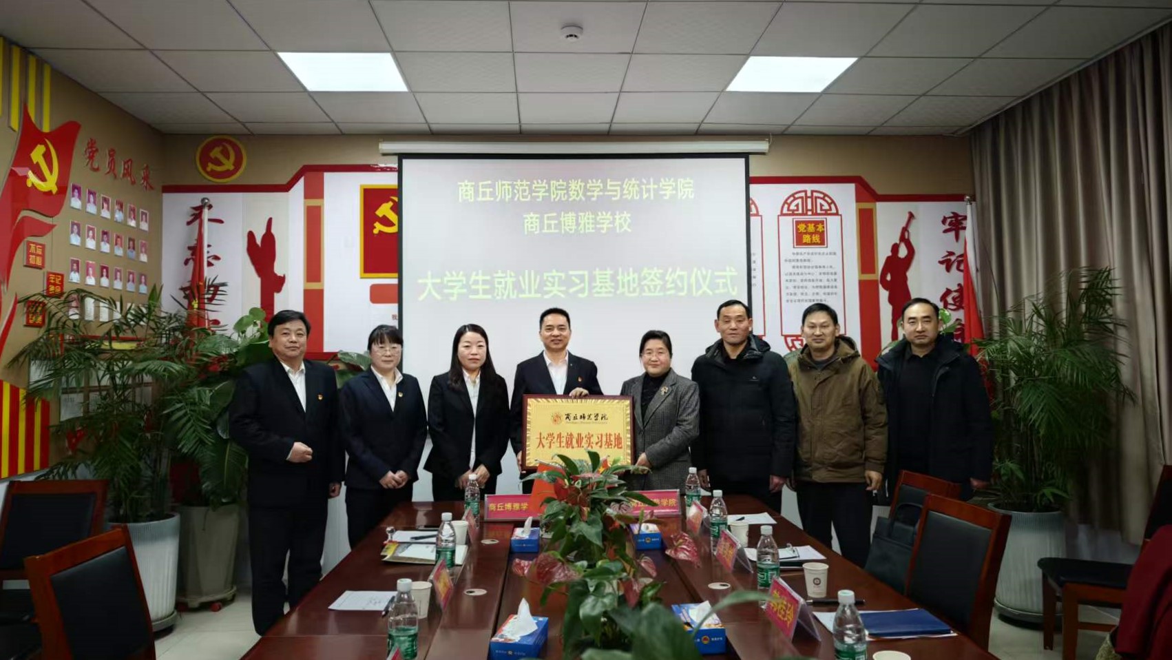 1月29日,副校长韩桂玲带领数学与统计学院领导班子前往商丘市博雅学校,开展“访企拓岗促就业”专项对接活动。韩桂玲介绍了学校在师范教育、学科建设与人才培养方面的特色与成效,她指出,学校将始终扎根豫东、服务地方,不断探索师范生培养新模式,实现高校与中小学的资源共享与育人协同。双方共同签署了《商丘师范学院大学生就业实习基地协议书》,并举行“大学生就业实习基地”授牌仪式。