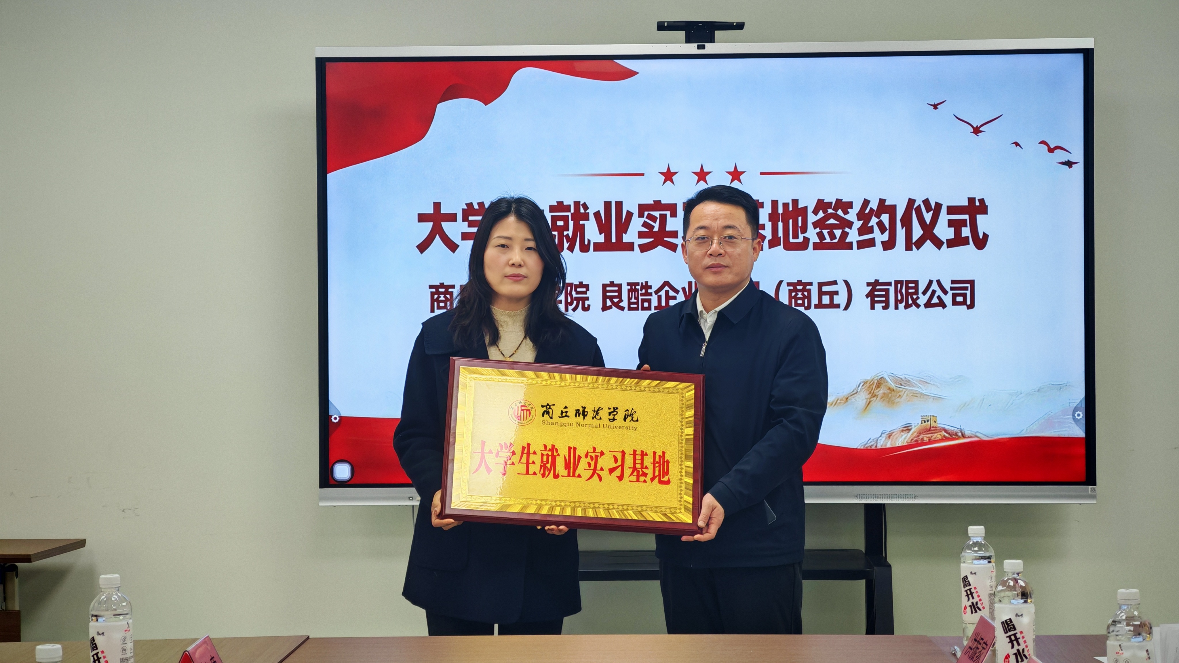 1月29日,副校长翟滨带领法学院领导班子成员前往河南良酷公设品牌管理有限公司,开展“访企拓岗”专项交流活动。考察期间,翟滨详细询问了该公司核心业务范围、创新运营模式、发展前景及人才需求标准等关键信息,深入了解社区服务行业发展前景,为后续校企合作方向找准切入点。双方以本次交流为契机,将开展深度合作,达成资源共享、优势互补、互利共赢的局面。双方共同签署了《商丘师范学院大学生就业实习基地协议书》,并举行了“大学生就业实习基地”授牌仪式。