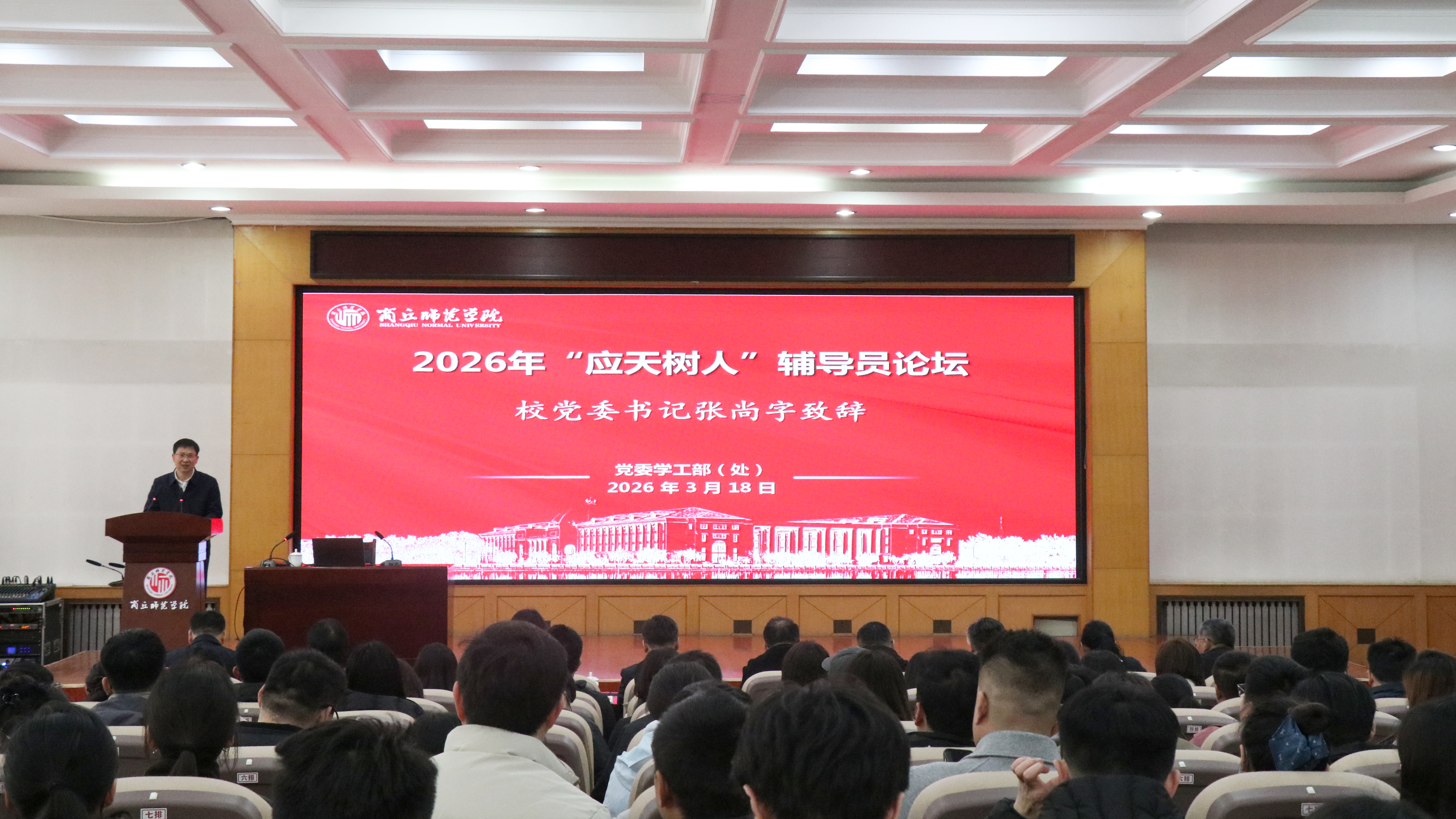 张尚字首先发表致辞,对赵国祥教授的到来表示诚挚的感谢,向奋斗在学生工作一线的全体学工干部致以亲切的问候。学校举办“应天树人”论坛旨在让一线辅导员分享智慧、探讨难题、凝聚共识,真正实现以论促学、以论促建、以论促干。并提出三点希望:一要心怀“国之大者”,引导青年学生坚定理想信念,厚植家国情怀。二要情系学生成长,将心理健康教育融入日常、做在经常。三要力行“应天”精神,传承校训精神,构建相互支撑、协同发力的育人新格局。