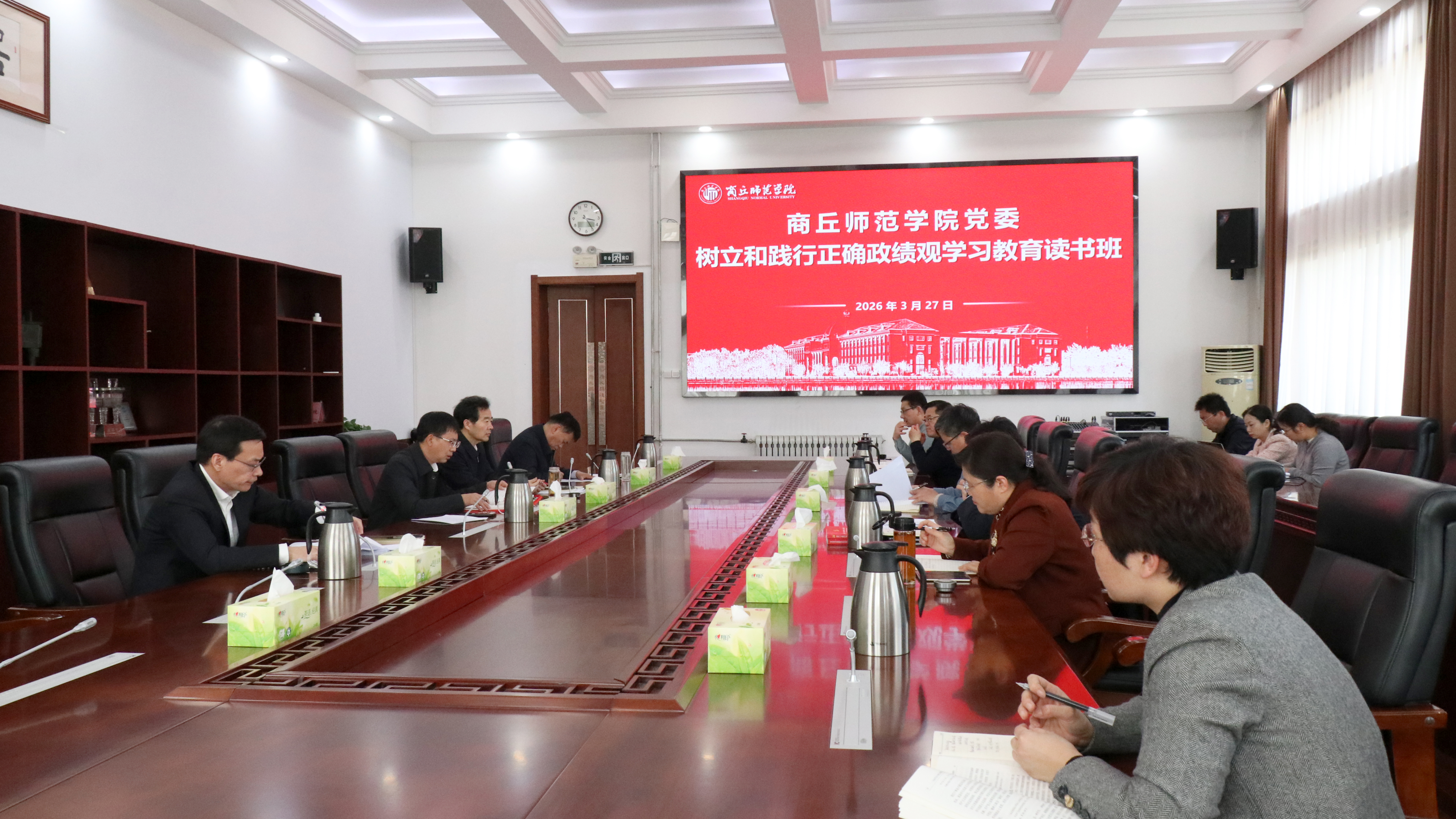 3月26日至27 日,我校党委举办“树立和践行正确政绩观学习教育”专题读书班。这次读书班采用集中学习、专题研讨与个人自学相结合的形式,旨在进一步增强党员干部树立和践行正确政绩观的政治自觉、思想自觉和行动自觉,坚持为师生出政绩、以实干出政绩,为打好打赢申硕攻坚战、确保年度重点工作和具体任务圆满完成、全力建设高水平应用型大学、推动 “十五五” 开好局起好步、奋力谱写中原大地推进中国式现代化新篇章贡献商师力量。
