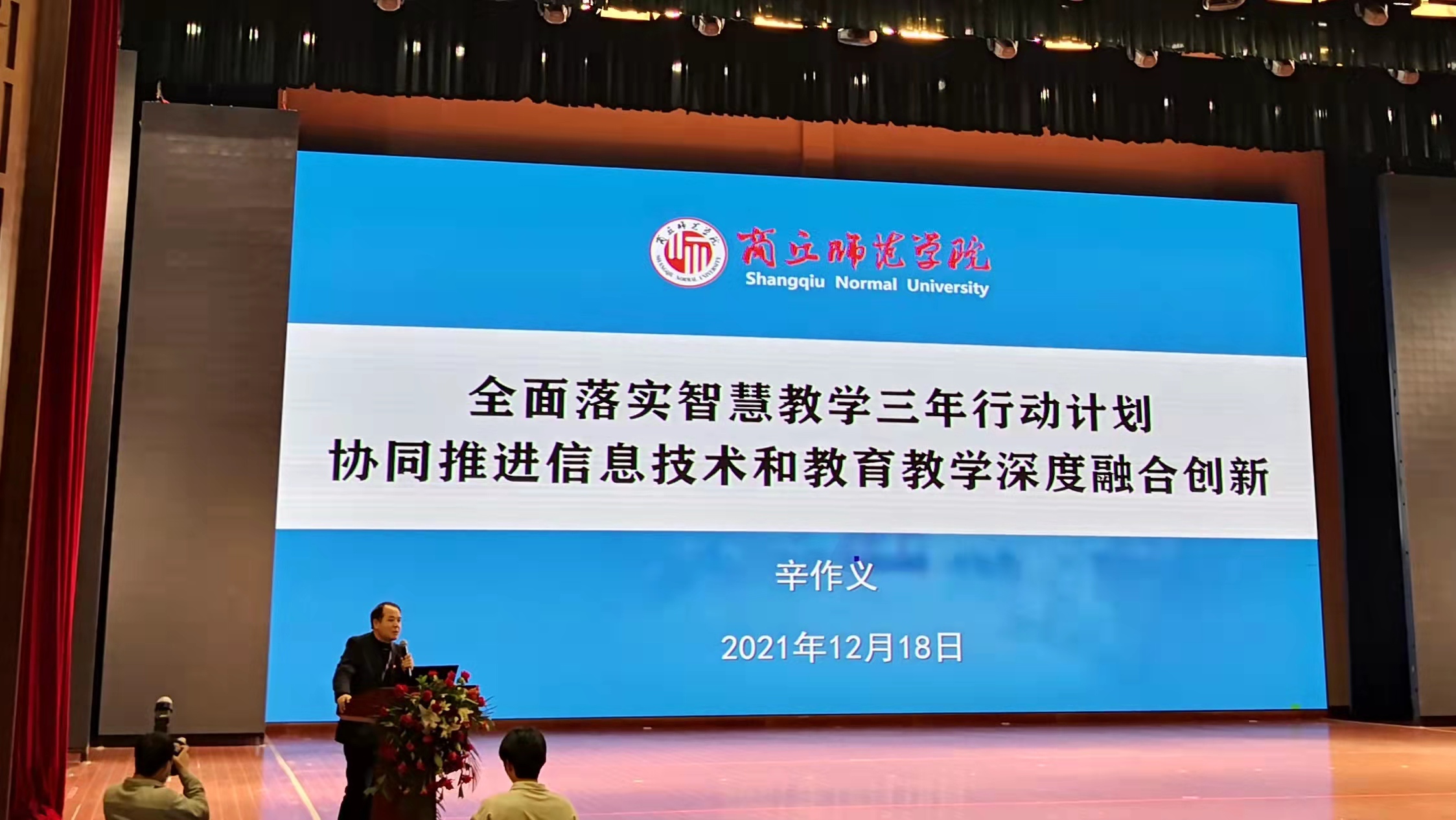 为深入贯彻习近平总书记关于教育的重要论述和全国教育大会精神,全面落实河南省教育厅《关于进一步推进普通本科高等学校智慧教学的实施意见》和《河南省本科高等学校智慧教学三年行动计划》,由河南省高等教育学会主办的河南省普通本科高校智慧教学研讨会于12月18日-19日在郑州工业应用技术学院举行。我校副校长辛作义应邀出席活动,并以“全面落实智慧教学三年行动计划,协同推进信息技术和教育教学深度融合创新”为题作了大会主题发言,向与会代表重点介绍了我校推进智慧教学建设的典型经验做法。