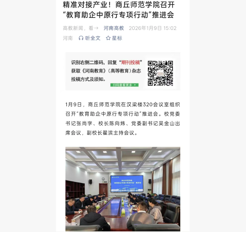 近日,河南高教报道我校召开“教育助企中原行专项行动”推进会,精准对接产业。